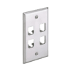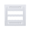 Las placas frontales de la serie Classic están disponibles en 1, 2, 3, 4 y 6 puertos para instalación vertical, y 2 y 4 puertos para instalación horizontal. Las placas frontales de la serie Classic aceptan todos los módulos Mini Com® para aplicaciones UTP, STP, fibra óptica y audio/video. Las placas frontales están disponibles en un diseño al ras o inclinado, y disponibles con o sin etiquetas. El diseño inclinado aumentará la profundidad de la pared para mejorar el control del radio de curvatura.