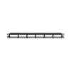 Los paneles de parcheo modulares consisten en un panel de metal con placas frontales moldeadas a presión que se pueden soltar por la parte delantera. Los paneles de conexión aceptan todos los módulos Mini-Com® para aplicaciones UTP, STP, fibra o A / V y deben montarse en Rackso o Gabinetes estándar de 19″. Los paneles de conexión estan disponibles en densidad estándar de 24 y 48 puertos y alta densidad de 72 puertos. Los paneles de conexión angulados se diseñarán en un ángulo óptimo para ayudar a enrutar el cable.